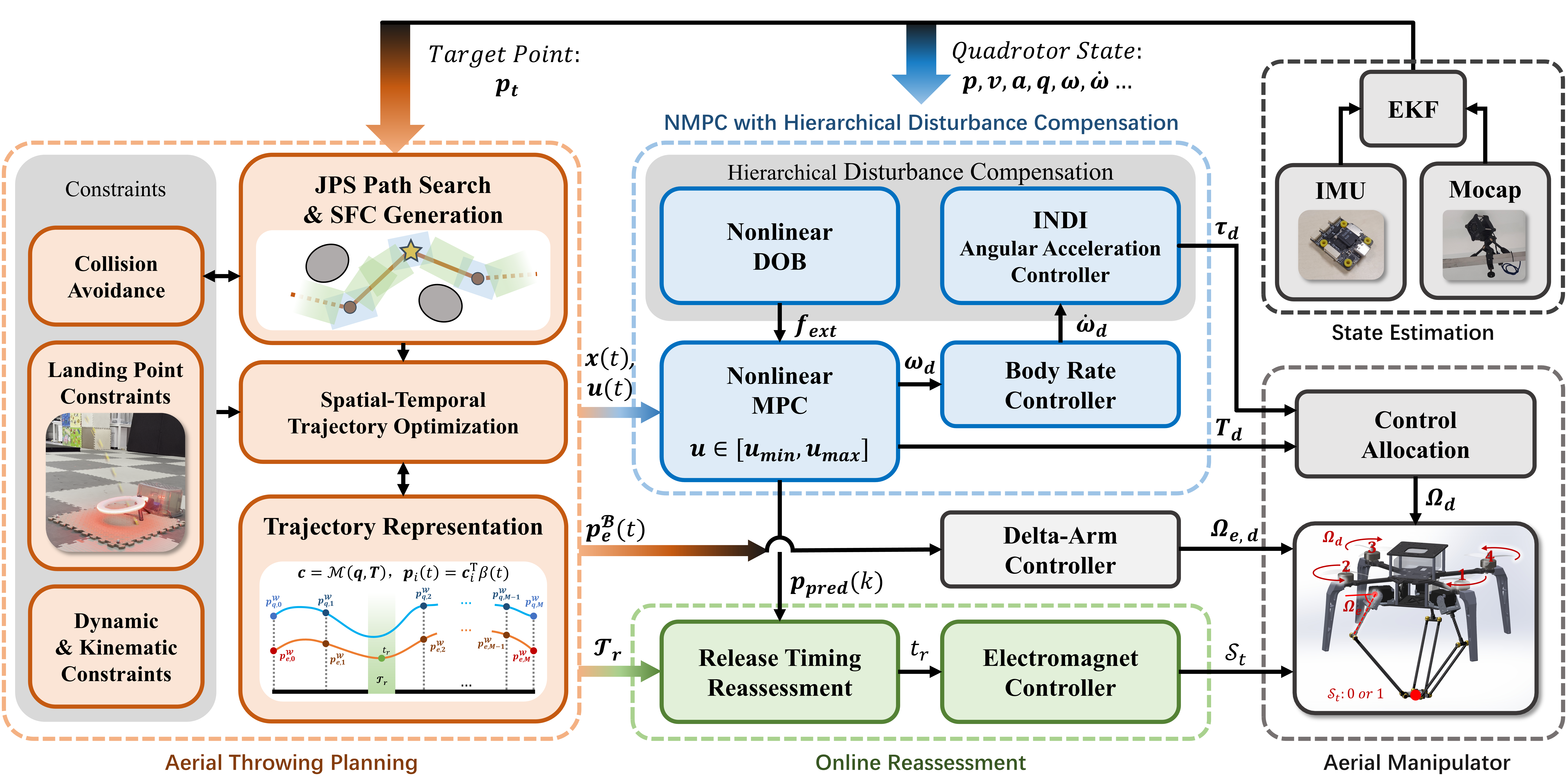 Autonomous aerial systems are increasingly essential for transportation and delivery tasks in complex environments where ground access is limited or unsafe for direct placement. In airdrop missions, these platforms face the dual challenges of abrupt control mode switching and inherent system delays along with control errors. To address these issues, this paper presents an autonomous airdrop system based on an aerial manipulator (AM). The introduction of additional actuated degrees of freedom (DoF) enables active compensation for UAV tracking errors. By imposing smooth and continuous constraints on the parabolic landing point, the proposed approach generates aerial throwing trajectories that are less sensitive to the timing of payload release. A hierarchical disturbance compensation strategy is incorporated into the Nonlinear Model Predictive Control (NMPC) framework to mitigate the effects of sudden changes in system parameters, while the predictive capabilities of NMPC are further exploited to improve the precision of aerial throwing. Both simulation and real-world experimental results demonstrate that the proposed system achieves greater agility and precision in airdrop missions.